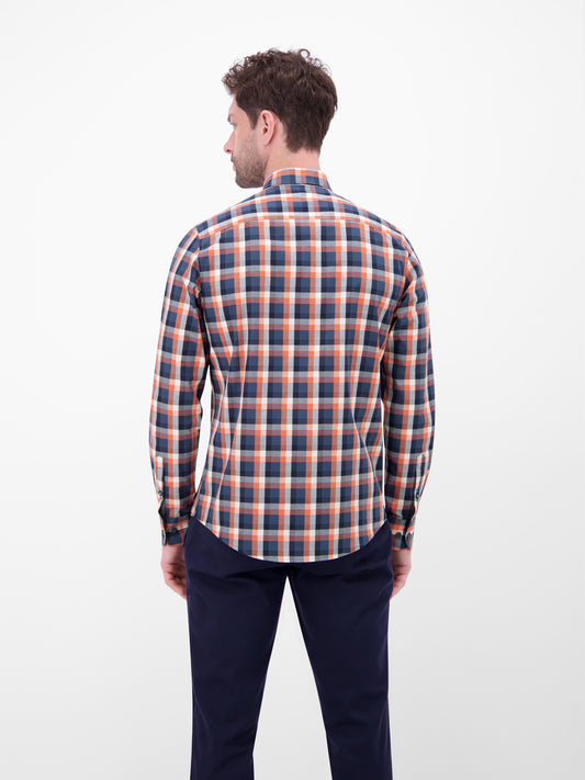 Rome Long Sleeve Check Pattern Shirt - Copper Brown